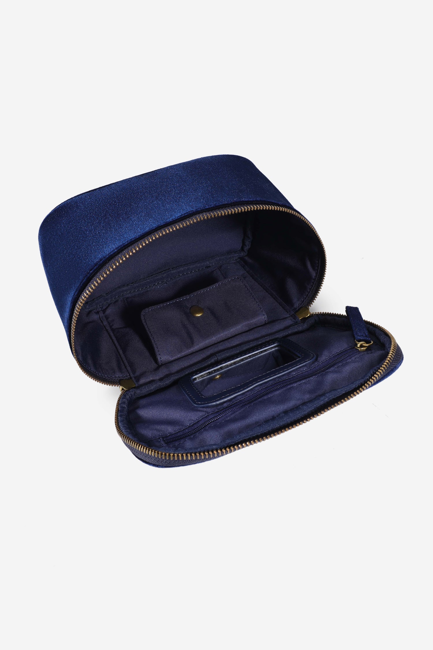 Dentro trovi tutto quello che serve: specchio integrato, tasca con zip, tasca con bottone e spazio per tutti i tuoi essential.
