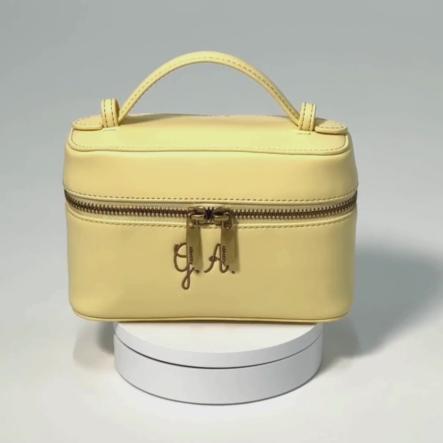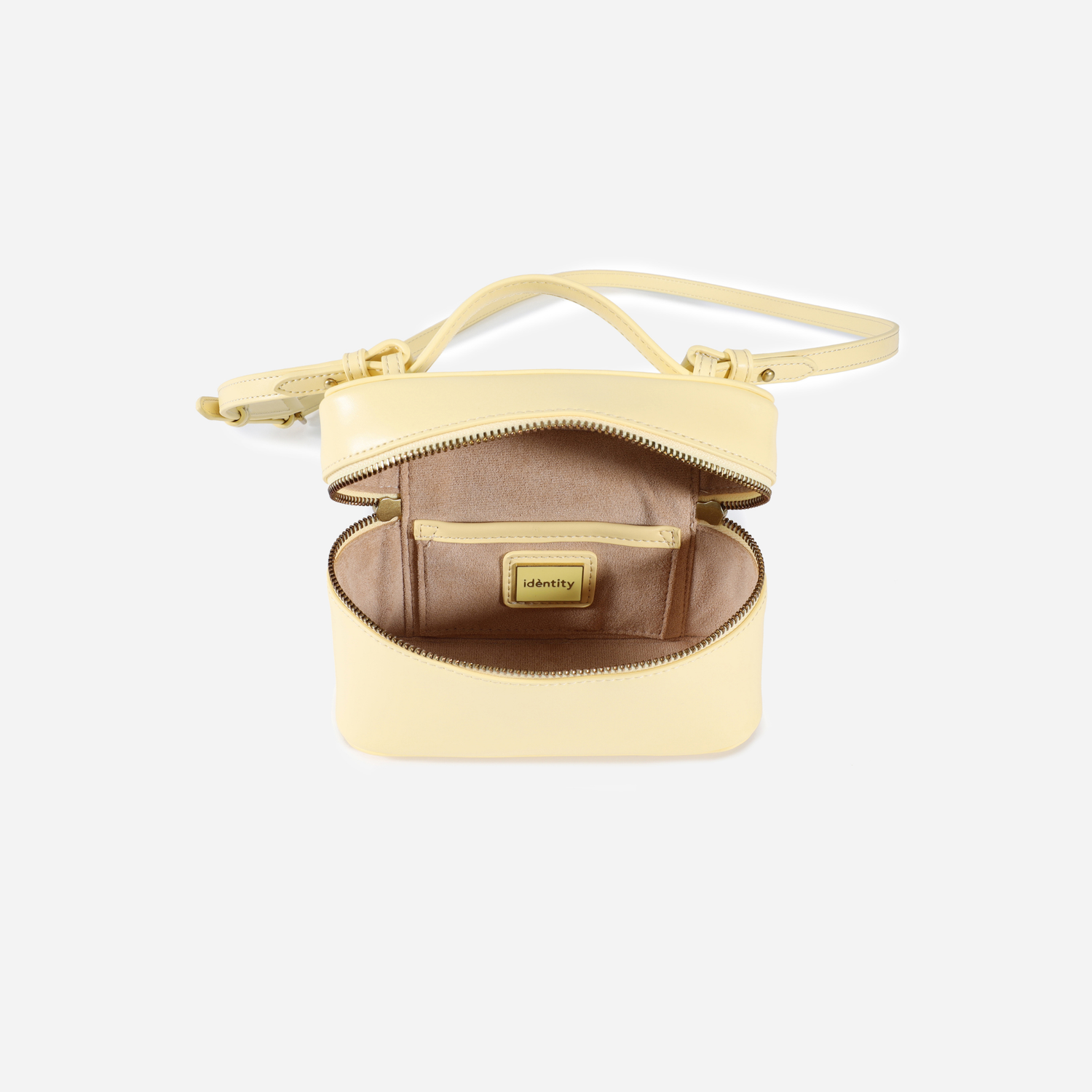 Realizzata in similpelle liscia con doppia zip bronzata e il tuo nome ricamato sul fronte, perché ogni borsa Idèntity è davvero solo tua.