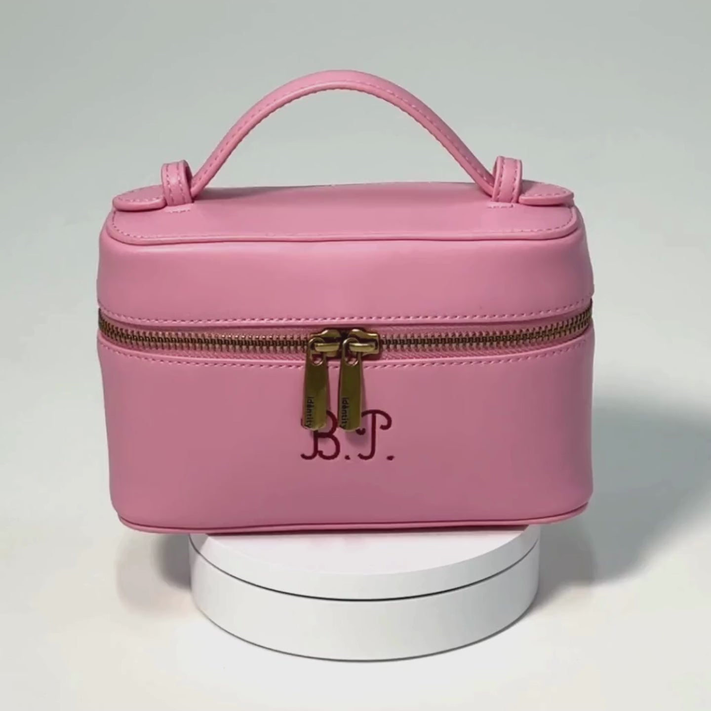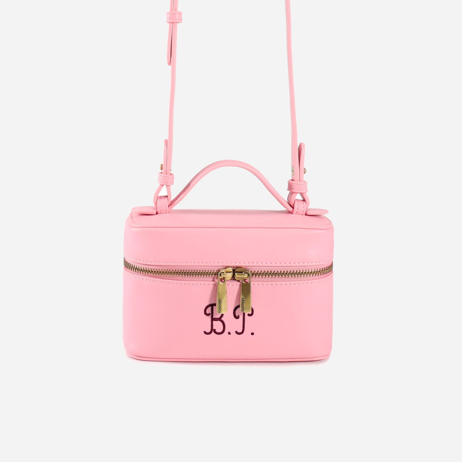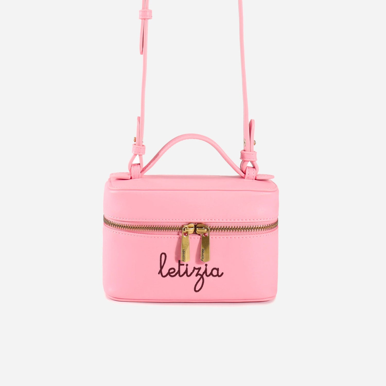 Realizzata in similpelle liscia con doppia zip bronzata e il tuo nome ricamato sul fronte, perché ogni borsa Idèntity è davvero solo tua.