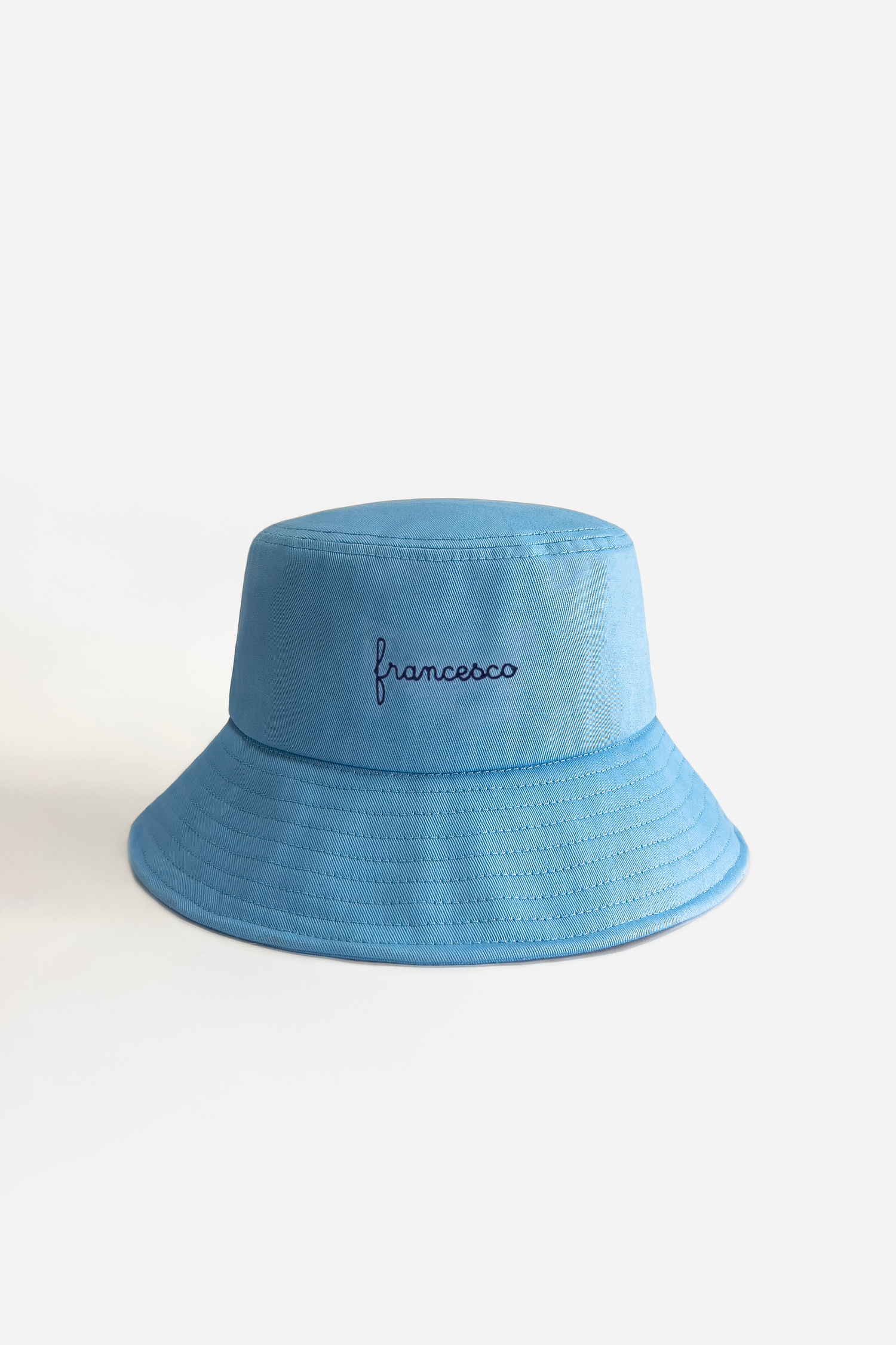 Realizzato in tela di cotone 100%, il Bucket Hat è disponibile in quattro tonalità per abbinarsi a tutti i nostri prodotti estivi: Blu Navy, Crema, Lilla e Azzurro.