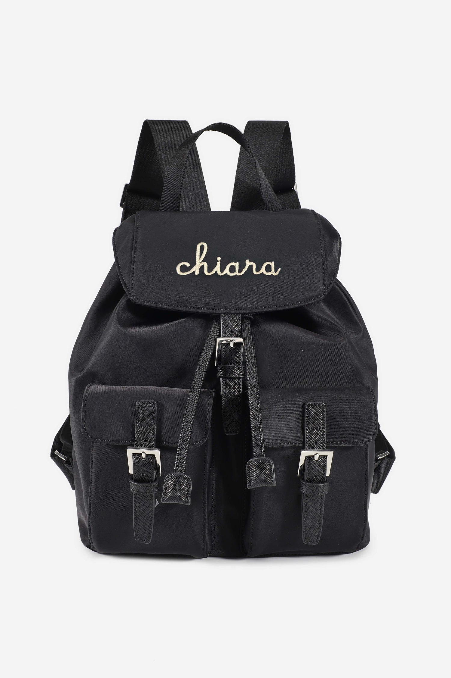 Realizzato in nylon nero con dettagli in similpelle saffiano e hardware color argento, è pensato per essere comodo ogni giorno e al tempo stesso ricercato nei dettagli.